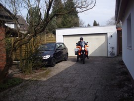 Schuppen, wo ich die Katie neben 2 anderen Moppeds abstelle. Ein