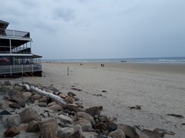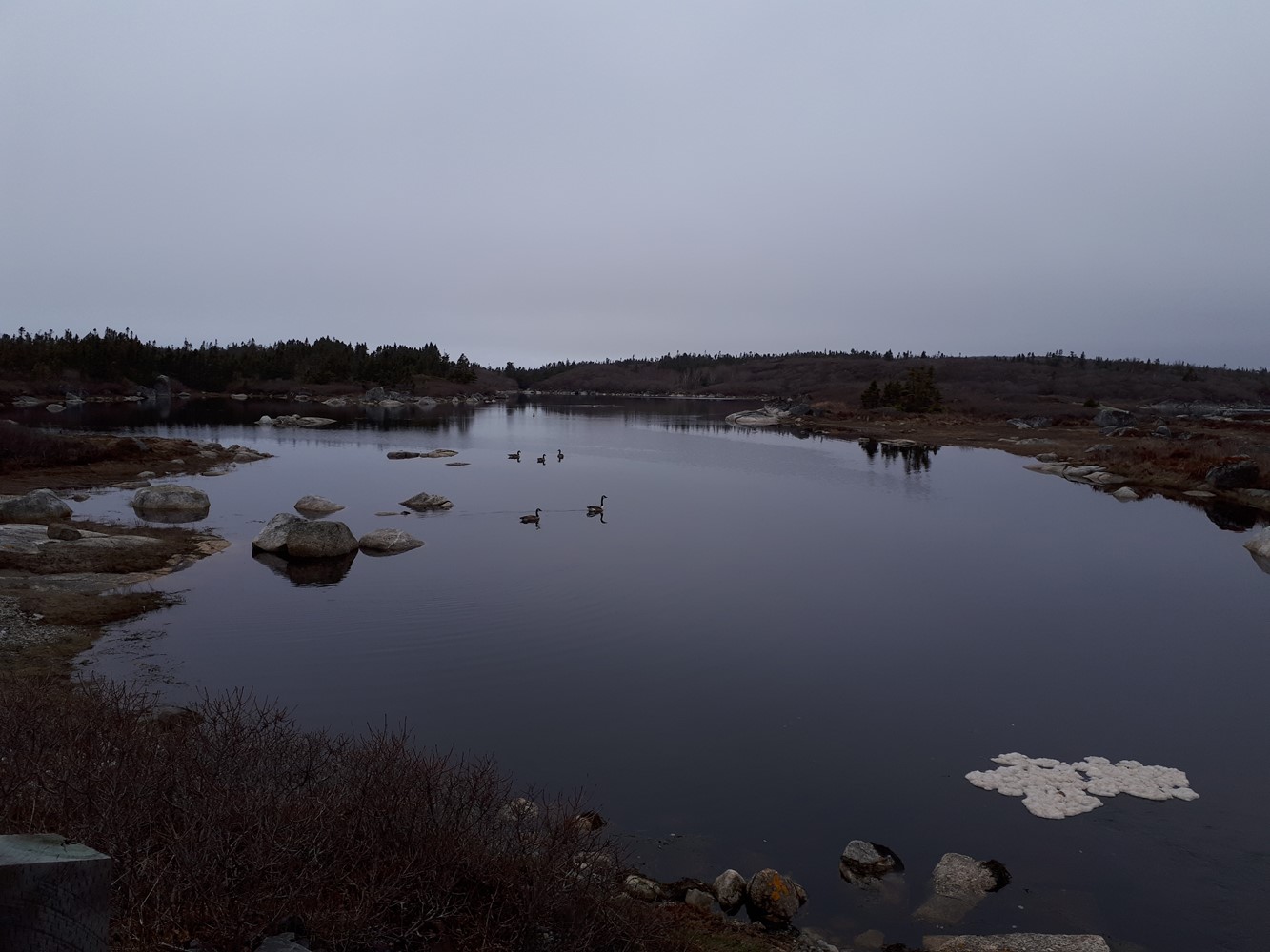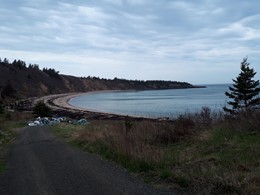 Fahrt auf Digby's Neck, die Nehrung südlich von Digby. Viele schöne Campingplätze, aber alles noch in tiefem Winterschlaf. Außerdem ist es hier wieder saukalt. Ich habe gehört, dass hier schon manch einer fast erfroren wäre. Am Strand Sandy Cove drängt sich auch niemand zum Bade (bei 5°C). Aber der Plastikmüll von Winter ist schon zusammengetragen.