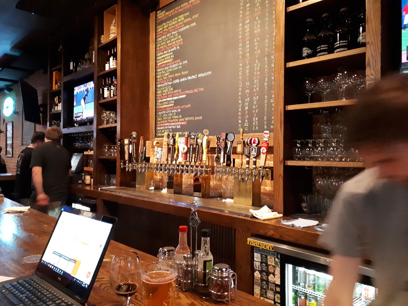 Das Independent Ale House in der St. Joseph Street: Eine umfassende Bierauswahl an der Tafel und darunter ca. 25 Zapfhähne. Flaschenbier habe ich hier nicht gesehen. In meinem Glas seht ihr ein Bier namens Alaskan Kölsch. Und so schmeckts tatsächlich. Irgendwie. Leckere Salate und Pizza und anderes Essen gibts hier auch.