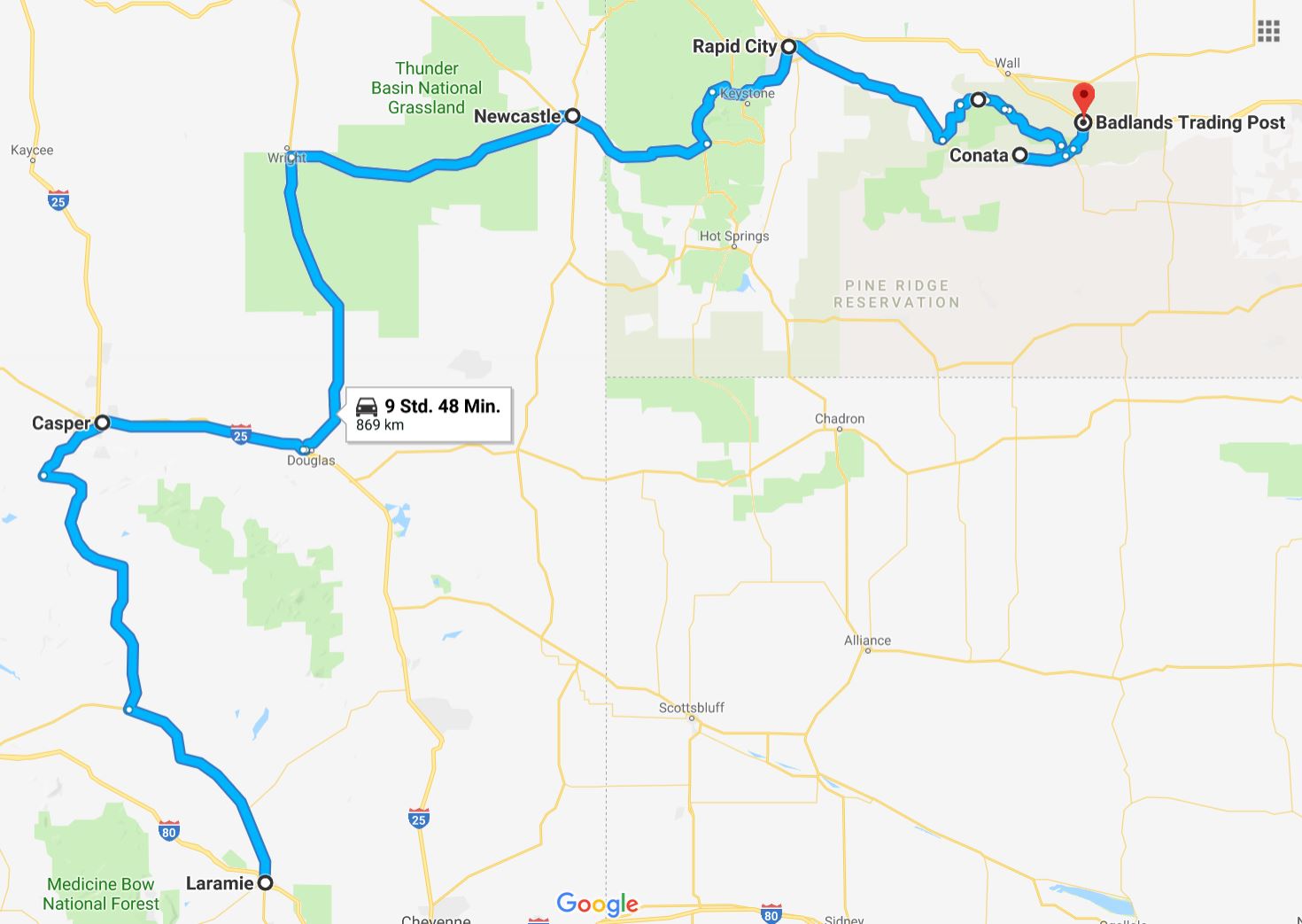 Um es vorweg zu sagen: Die Idee nach South Dakota in die Black Hills und in den Badlands Nationalpark zu fahren, entspringt meinem Entschluss, nicht den Yellowstone Park zu besuchen. Alle buchbaren Campingplätze dort waren ausgebucht, bzw. die wenigen nicht buchbaren Plätze sind üblicherweise morgens um 9.30 - 10h vollständig belegt. Auch die tatkräftige Unterstützung durch den netten Rezeptionisten in Laramie hat nicht helfen können. Und aufs Geratewohl in einen solchen Touristikhotspot zu fahren, ist mir zu stressig.