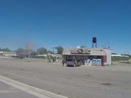 Die Tankstelle von Medicine Bow. 2 Zapfsäulen, eine für Diesel und eine für 85er Regular Benzin. Geht eigentlich nicht, muss jetzt aber sein.