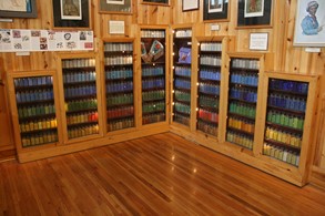 In diesem Schrank finden sich in allen Farbabstufungen Stickutensilien der verschiedensten Materialen und Formen, durchbohrte Perlen und Röhrchen aus Glas, Türkis und anderen Halbedelsteinen. Man braucht sie, um solche filigranen Stickarbeiten herzustellen. Wär das was für dich, Andrea?