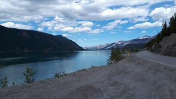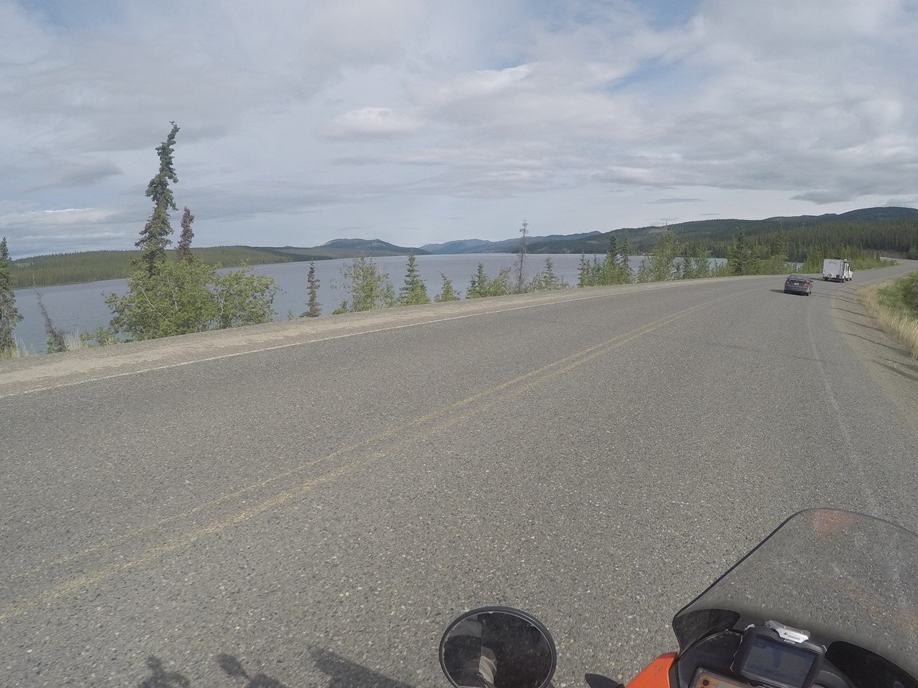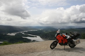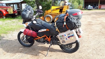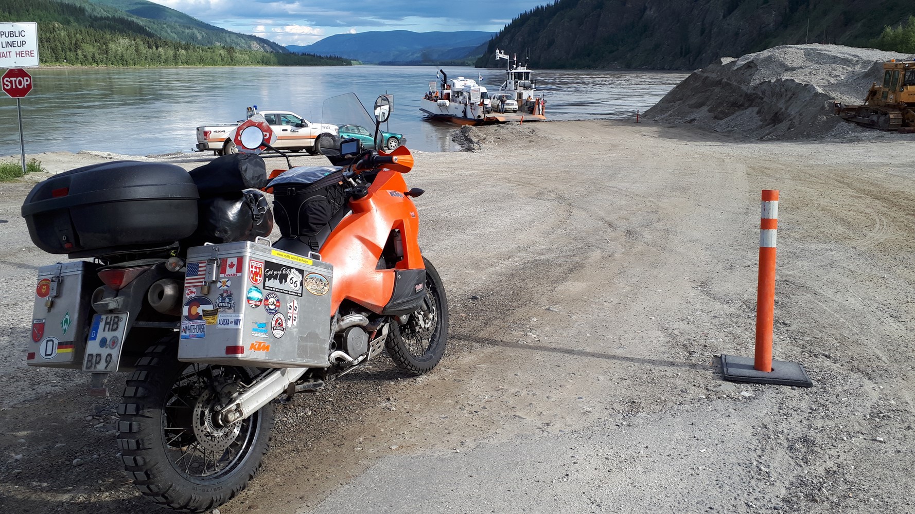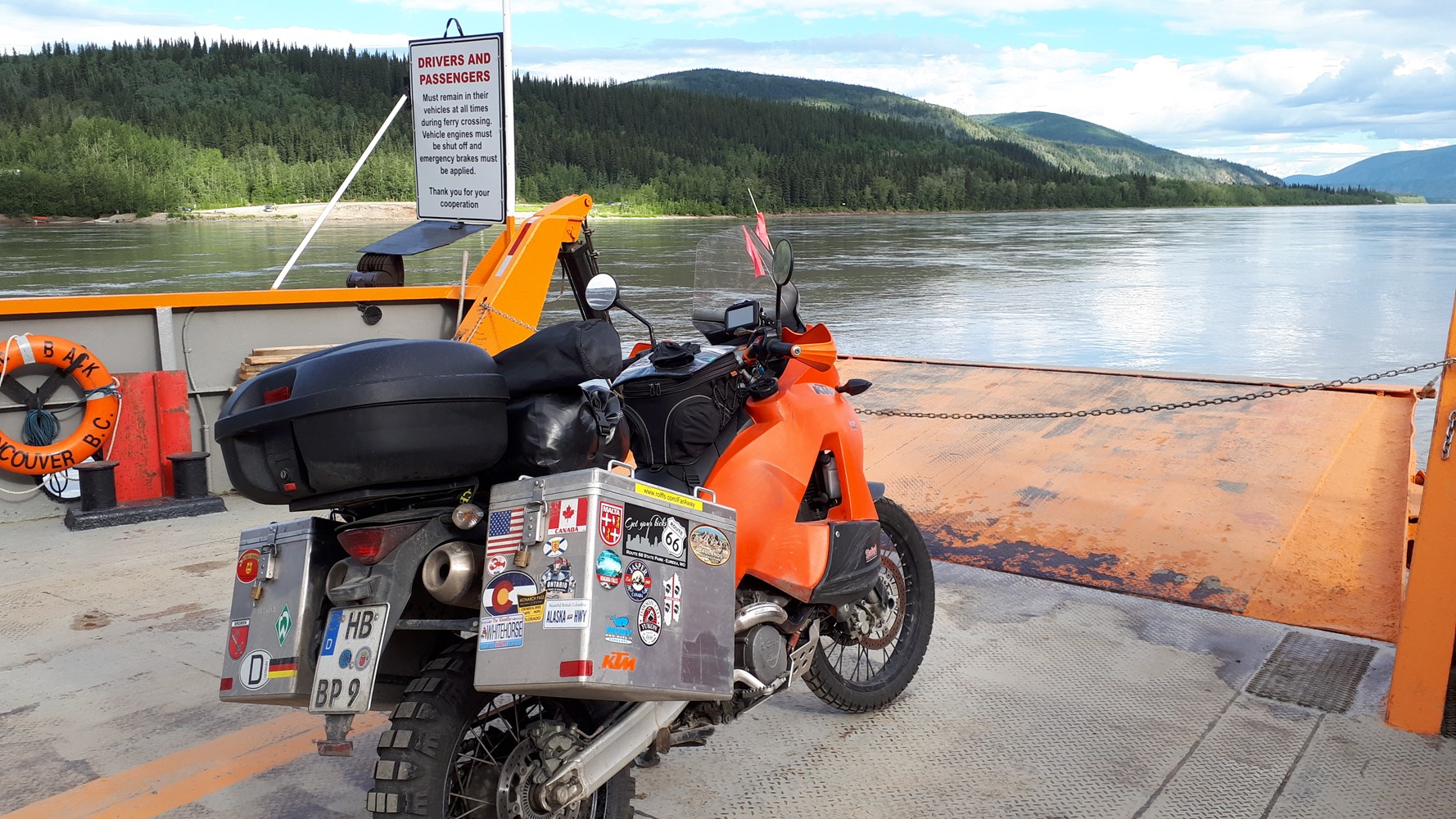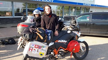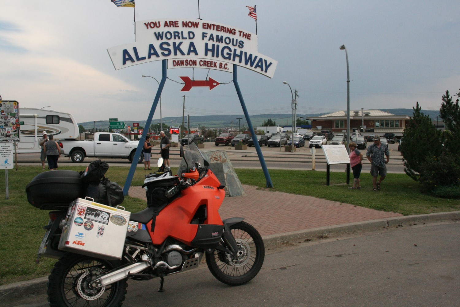 Die beiden sind auf ihrer Kati von England aus über Skandinavien, Russland, Mongolei und Korea nach Alaska gekommen. Sie haben mir in Fort Nelson geholfen, den Krach meines undichten Auspuff zu mildern. Danke dafür.