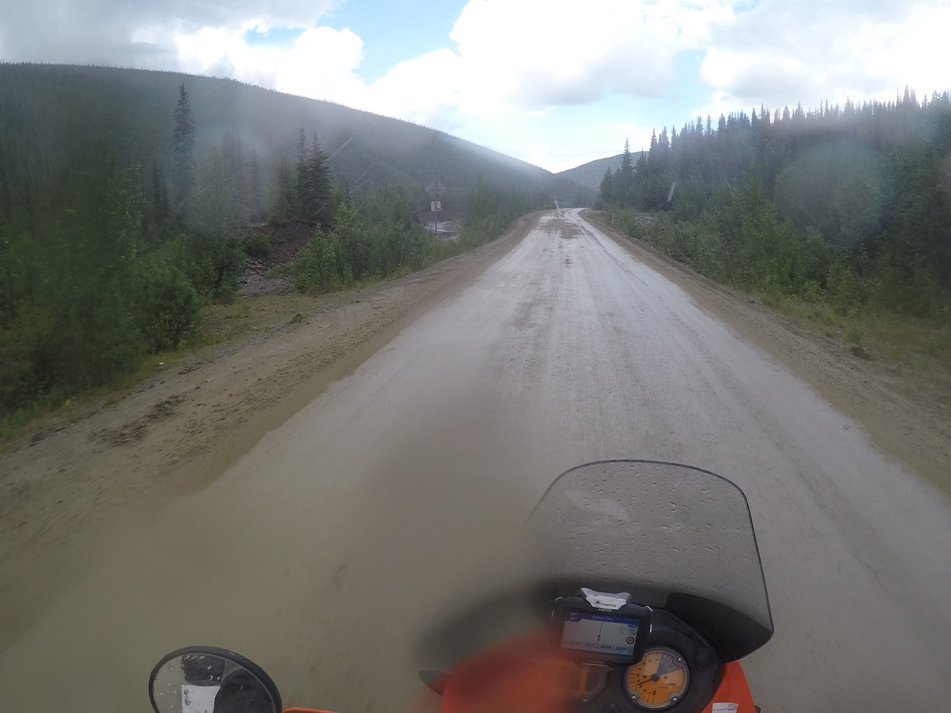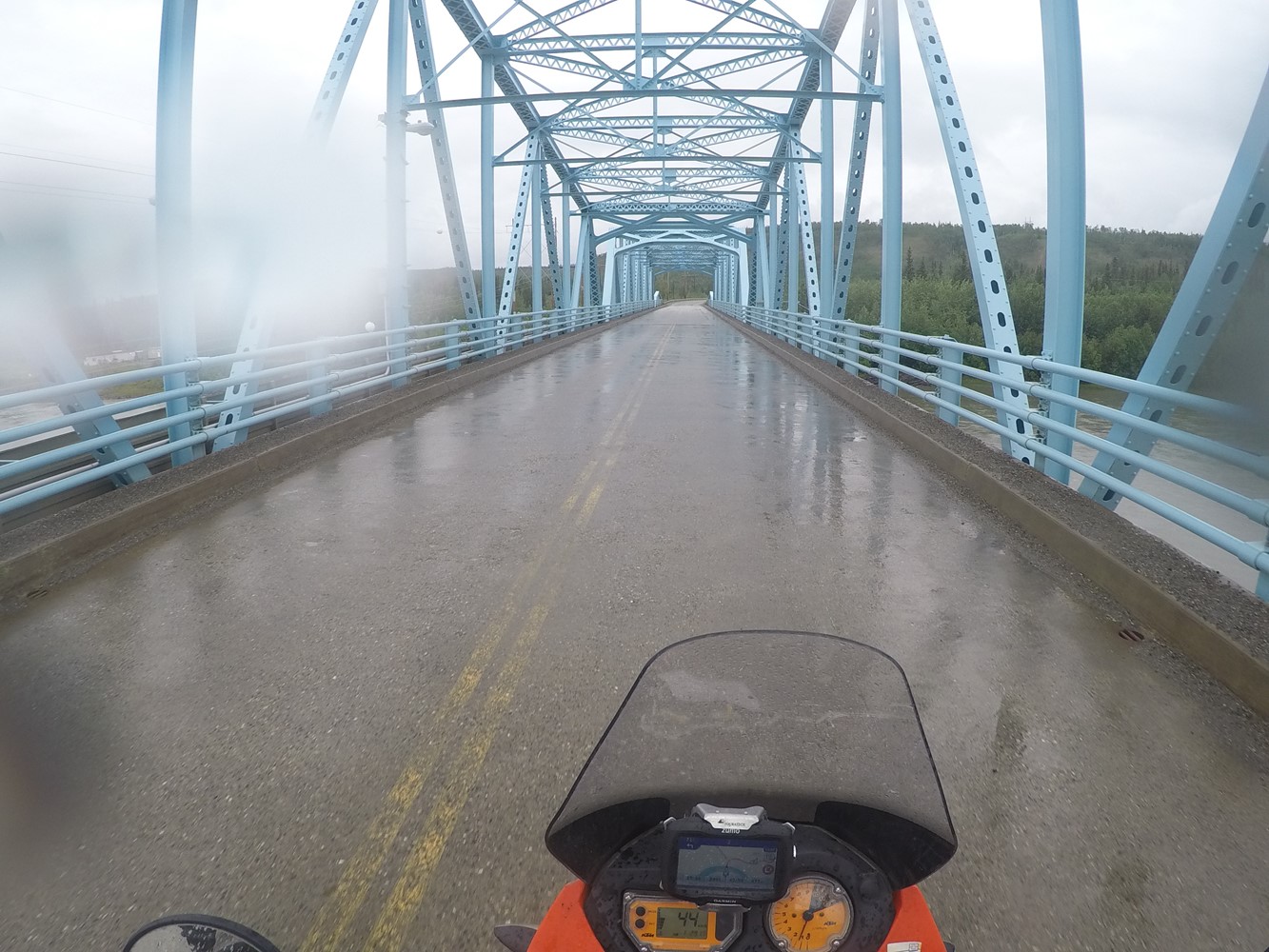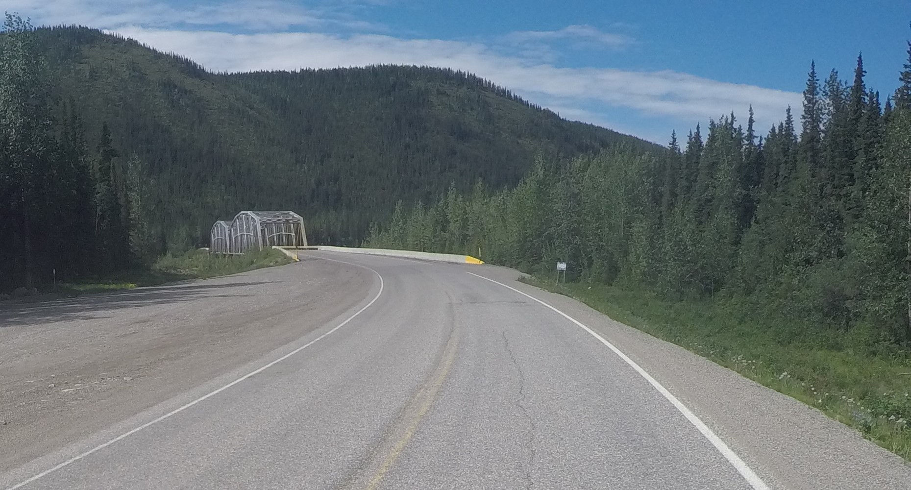 Nach 3 Stunden erst schön sonniger, dann immer regnerischerer Fahrt ist sie erreicht: Die Grenze zu Alaska - Zwei Buden im Nirgendwo.