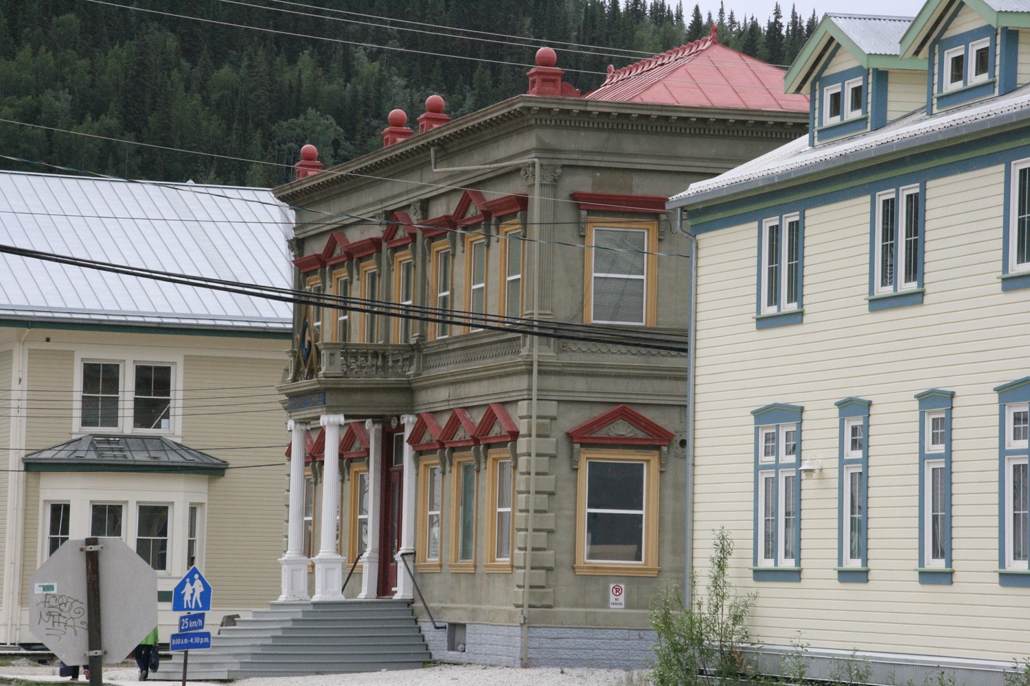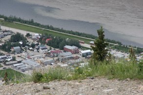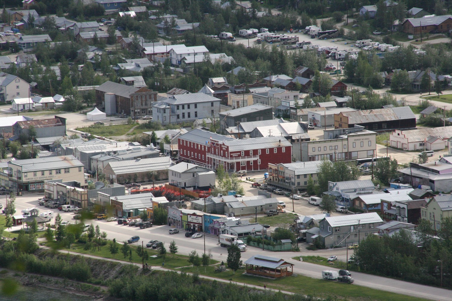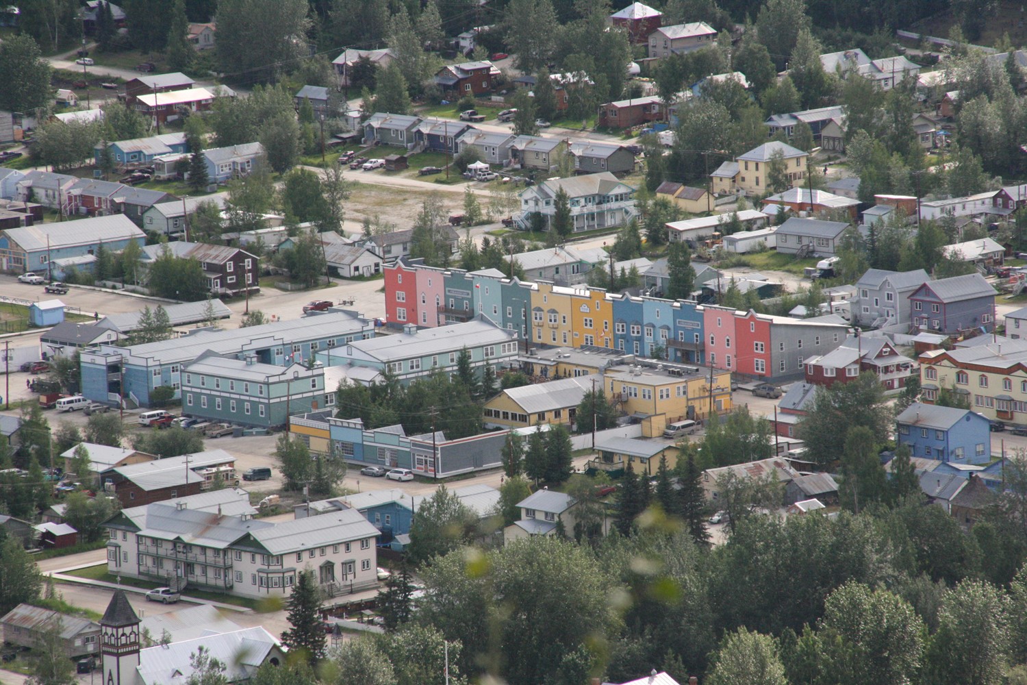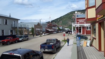 Dawson, YT. Weitab von allem. Eine bunte Mischung alter und alt scheinender Häuser, die Bevölkerung setzt sich interessant zusammen aus Alteingesessenen, hängengebliebenen Touristen und Aussteigern, die hier mit meist tourismusorientiertem Gewerbe Fuß gefasst haben. Eine sehr angenehme und gelassene Stimmung herrscht vor. Hier erlebe ich - begleitet von sehr amüsierten Kommentaren der schweizerischen Hotelbetreiber - das WM-Aus der deutschen Mannschaft. Die Schweiz ist weiter dabei.