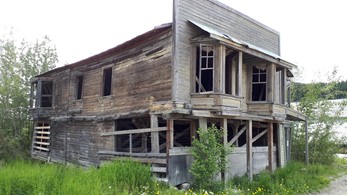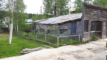 Der alten Häuser versacken im aufgetauten Permafrostboden, solche Spukhäuser gibts hier massenhaft.