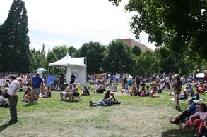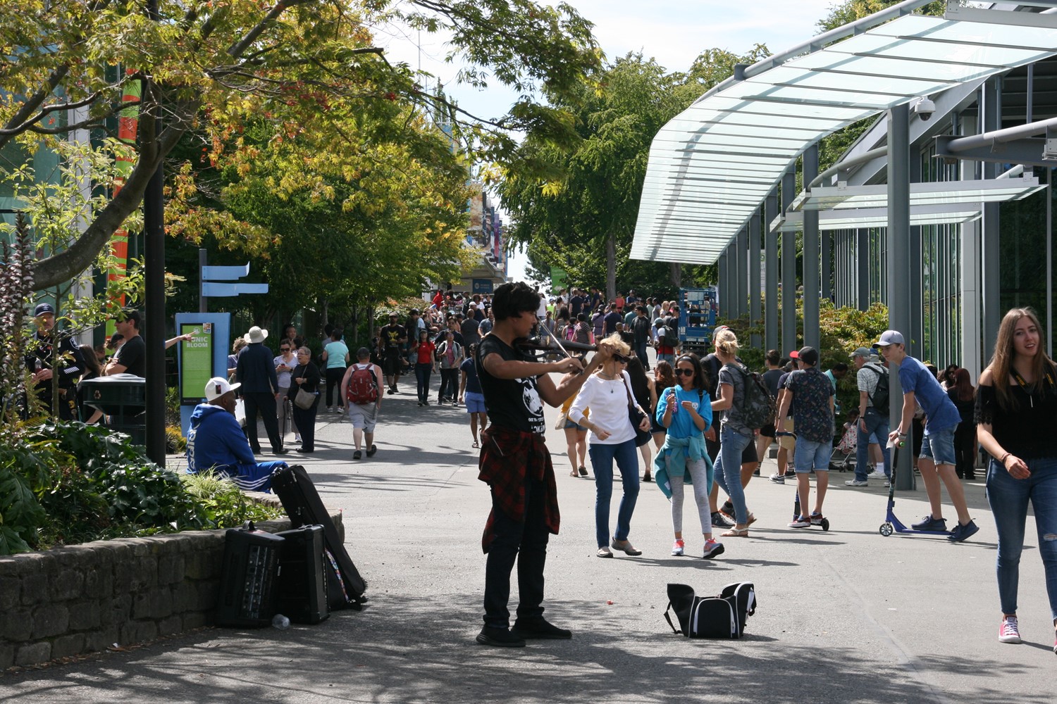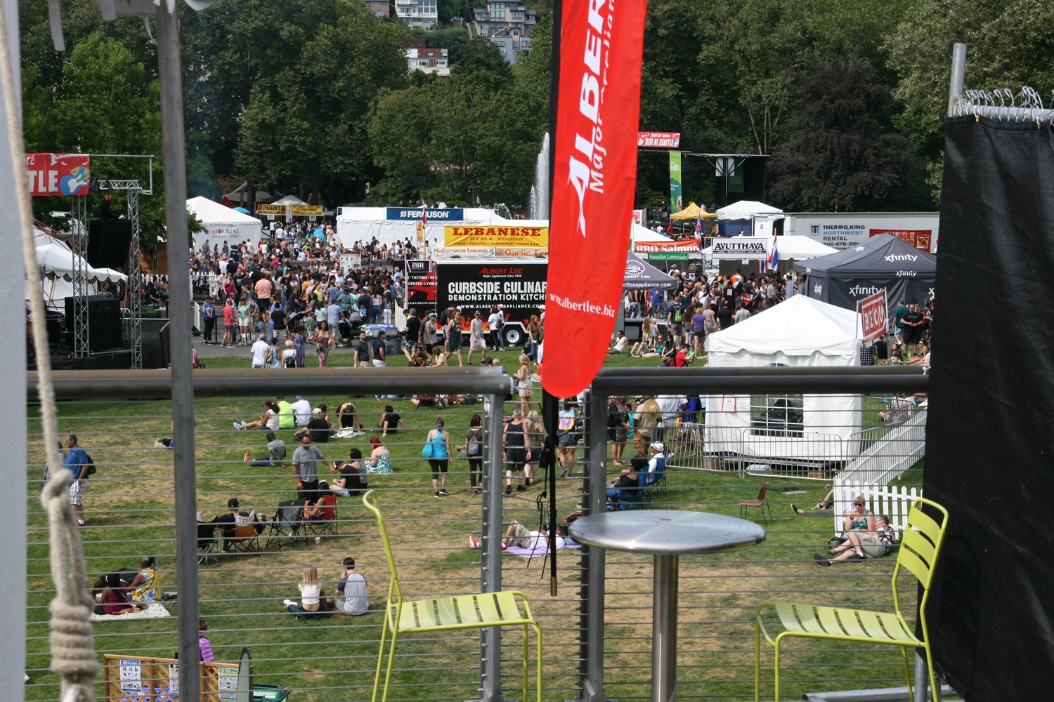 Die Fahrt auf die Space Needle schenke ich mir, dafür ist das Programm unten viel zu interessant: Ein Freiluftfestival mit viel Musik, Fressbuden und massenhaft Leuten. Tolle Stimmung, und ich lasse mich gerne mittreiben.