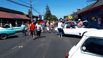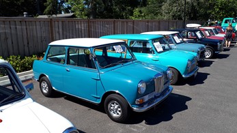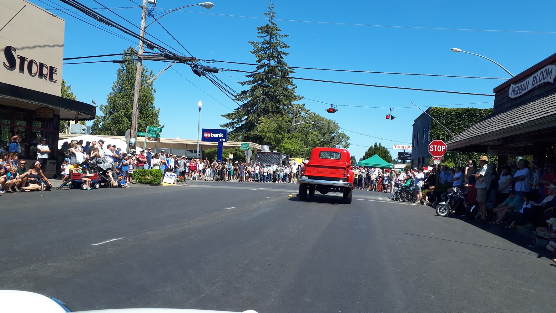 Am Sonntag gehts zum Strawberry Festival nach Vashon Island. Hier lebt Peter, ein Cousin von Inkgen mit seiner Frau Joan. Die beiden haben mich eingeladen, den Sonntag bei ihnen zu verbringen. Und weil Peters Mini-Club im Oldtimer-Corso mitfährt, darf ich gleich mitfahren. Ein Riesenspaß.