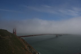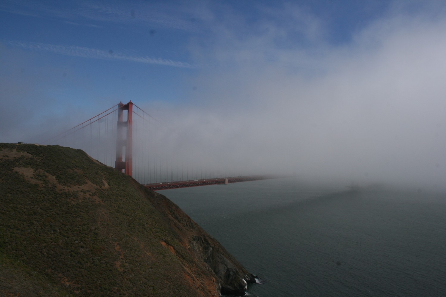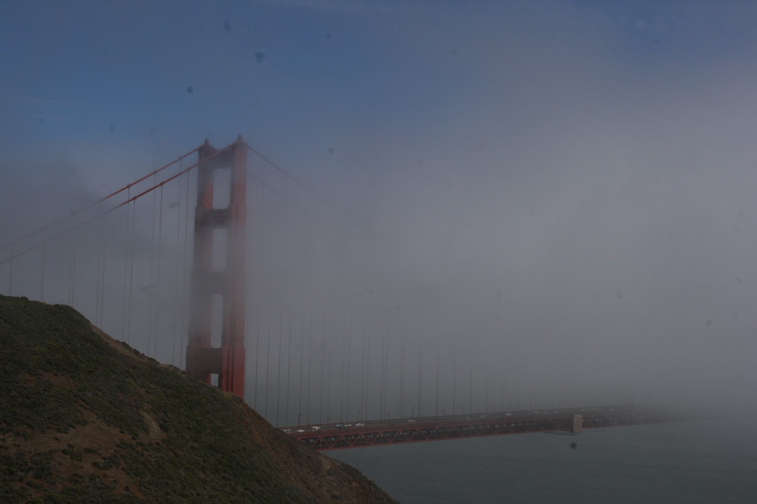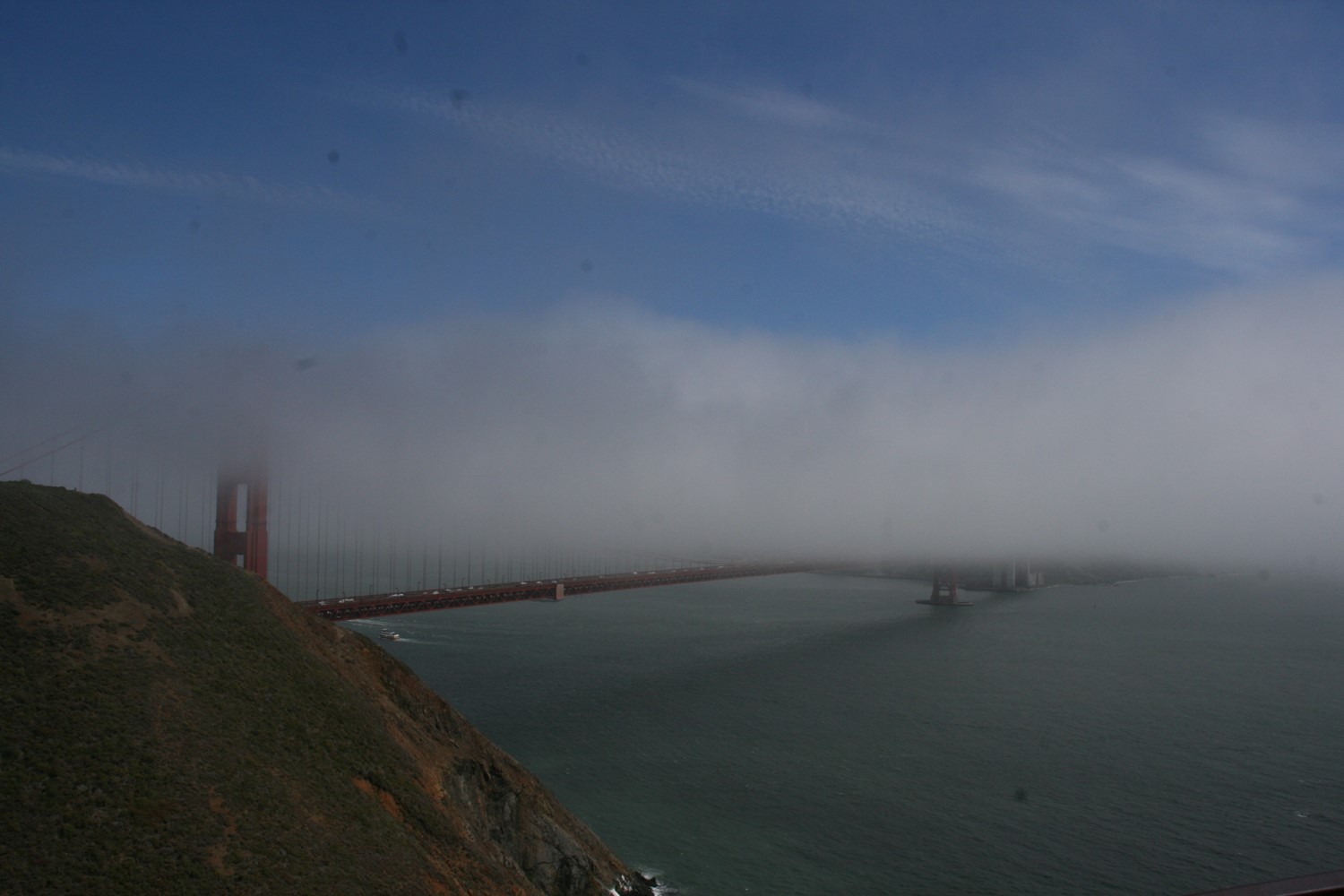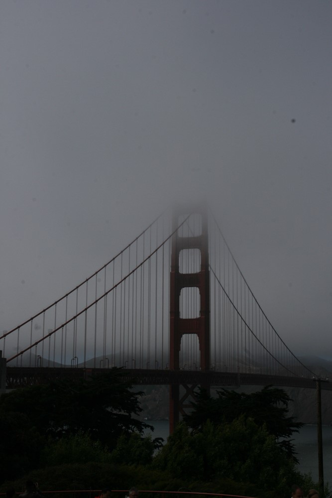 durch ihre Zoom-Objektive den Nebel anstarrten. Schnell die Brücke