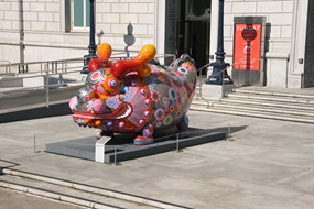 Am Tor zu Chinatown finde ich diese Bronzeplastik: Ob sich dadrüber wohl jemand freuen würde?
