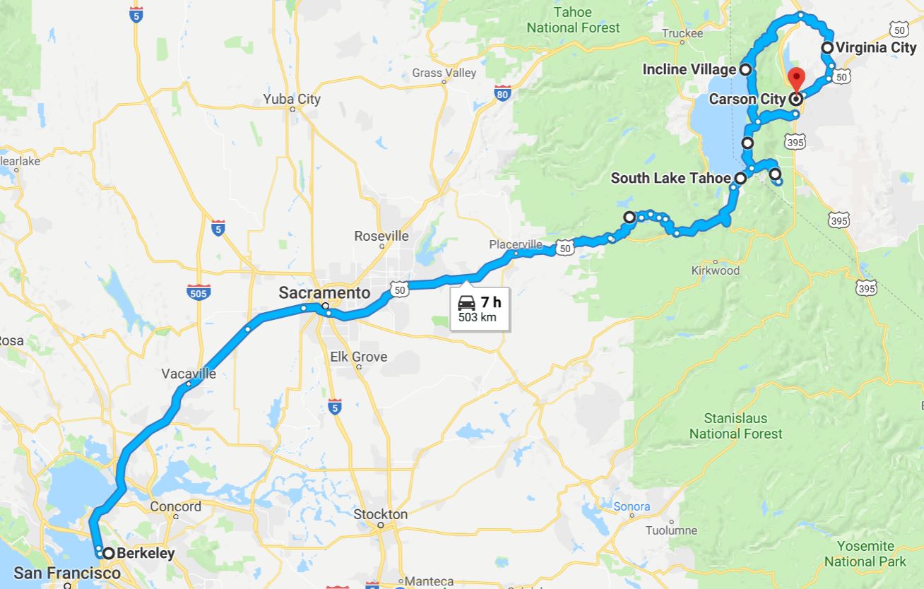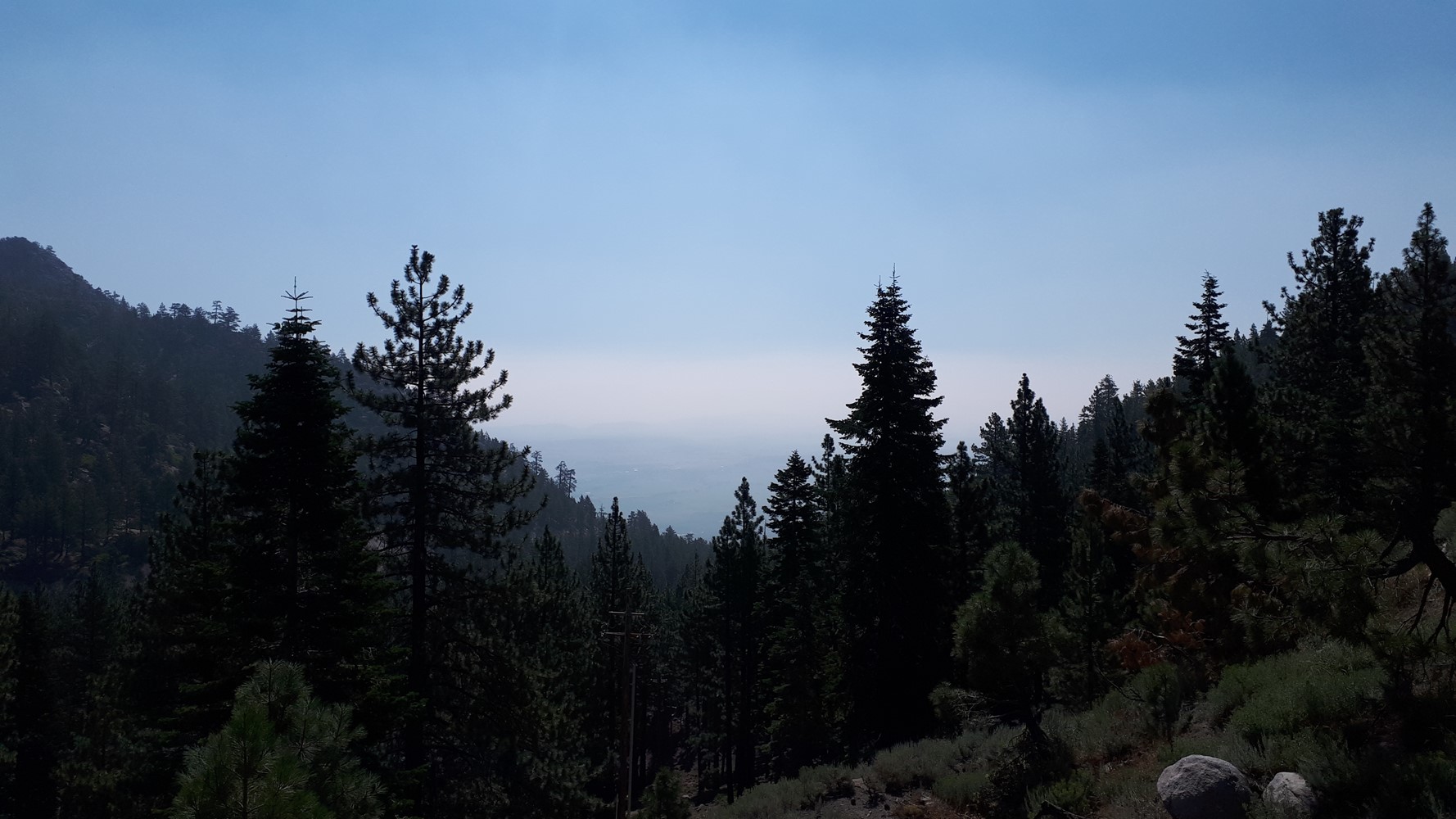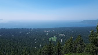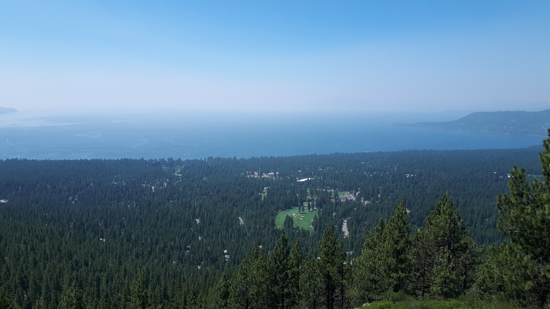 Blick hinunter nach Nevada: Heiß und verräuchert sieht's da aus. Ich fahre zurück zum Lake Tahoe, um weiter im Norden nach Nevada zu wechseln.