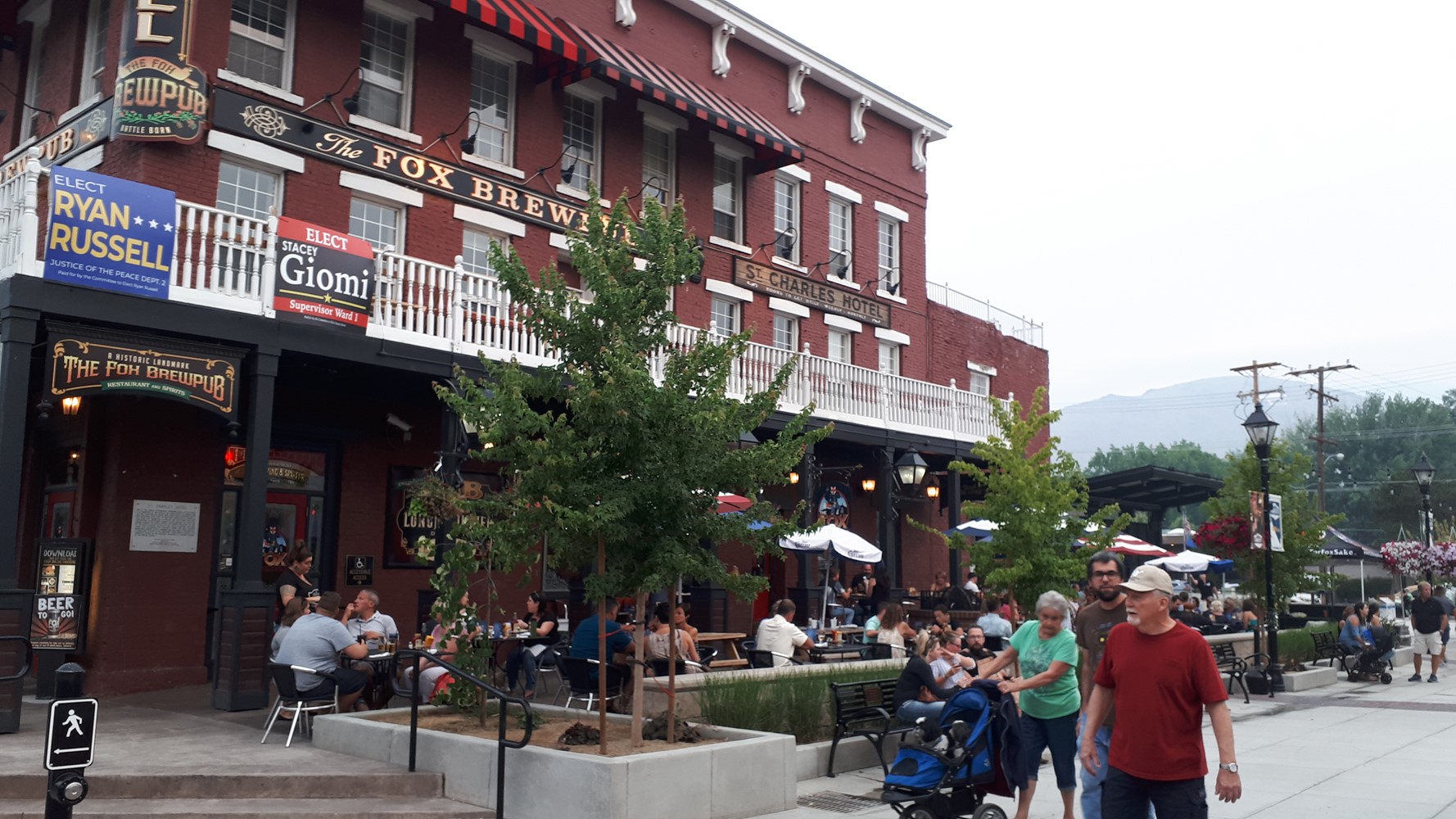 Outdoor-Gastronomie. Um den Brauereipub hat sich eine kleine