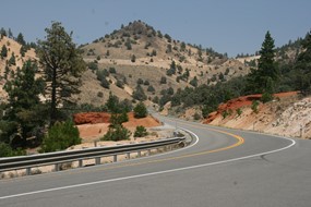Endlich weg von der Autobahn. Viel schöner zu fahren, aber keine spürbare Abkühlung - trotz des Schattens.