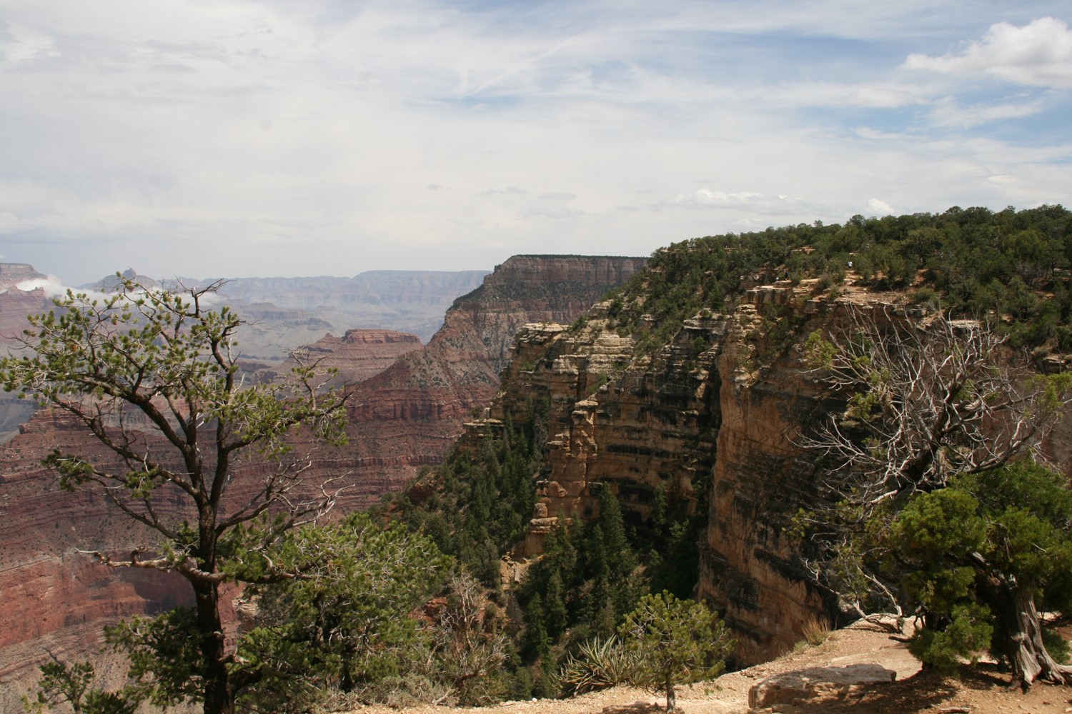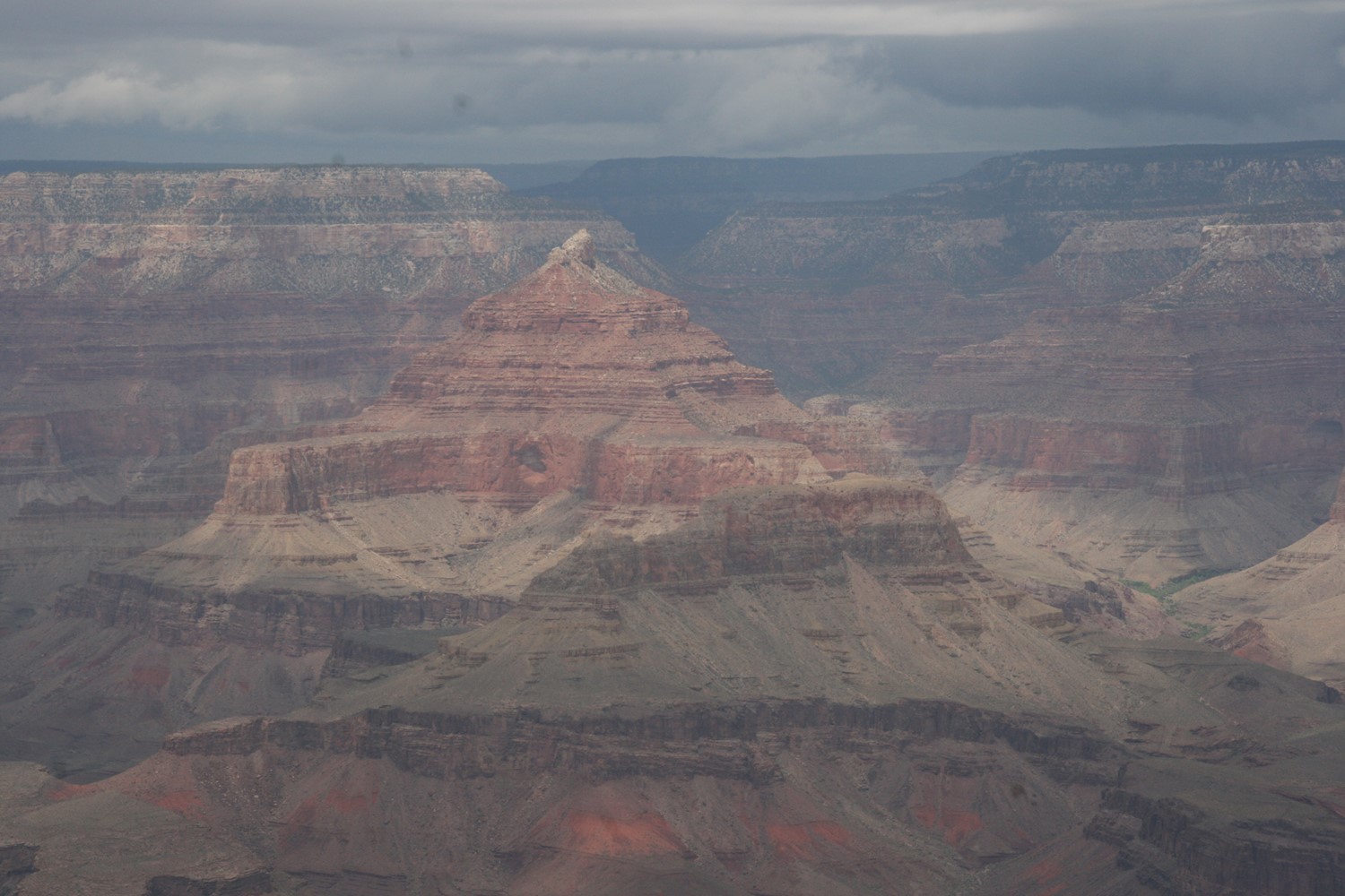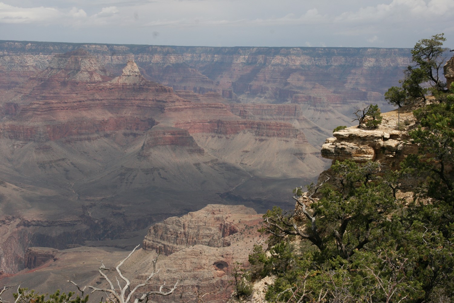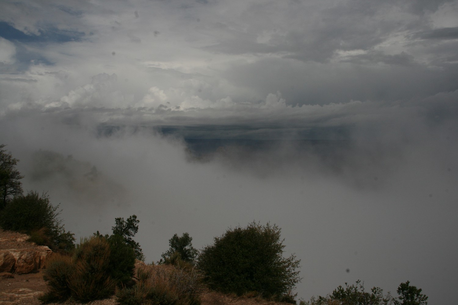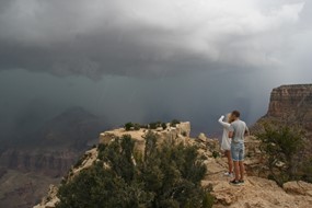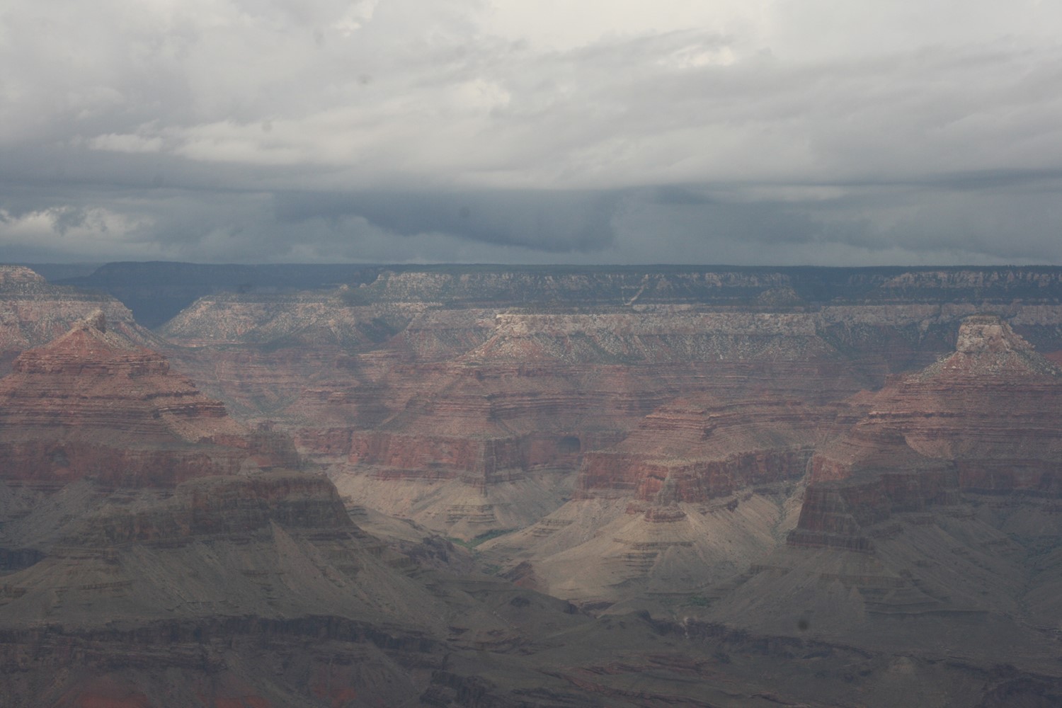 Und die Rechnung geht auf. Im Hintergrund noch ein paar Blitze und Donnergegrummel, dann gewinnt die Sonne wieder die Oberhand und bietet weite Blicke über den Canyon. Wie soll man solch großartige Panoramen nur auf so kleine Fotos kriegen?