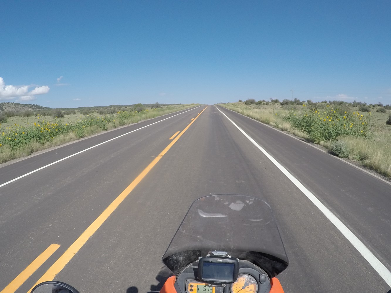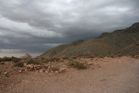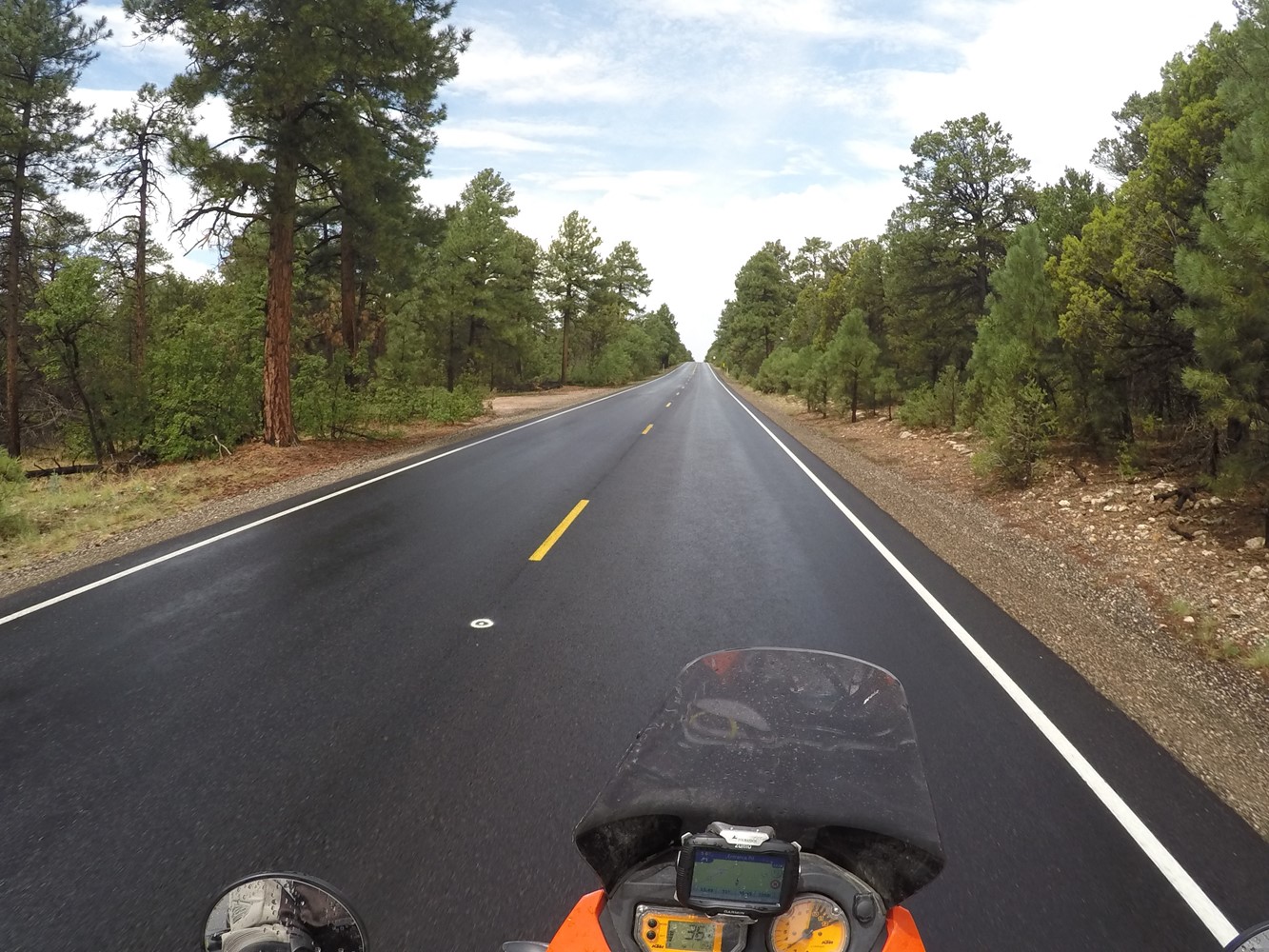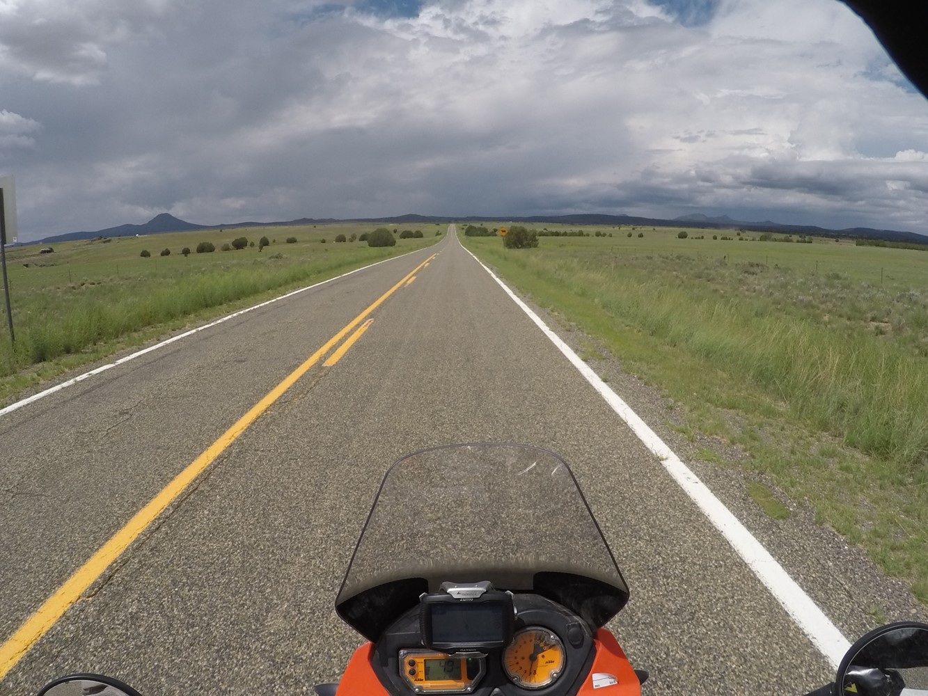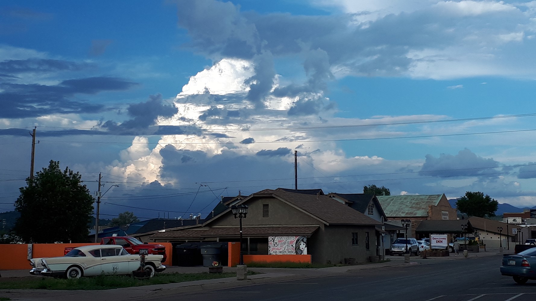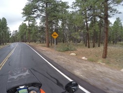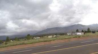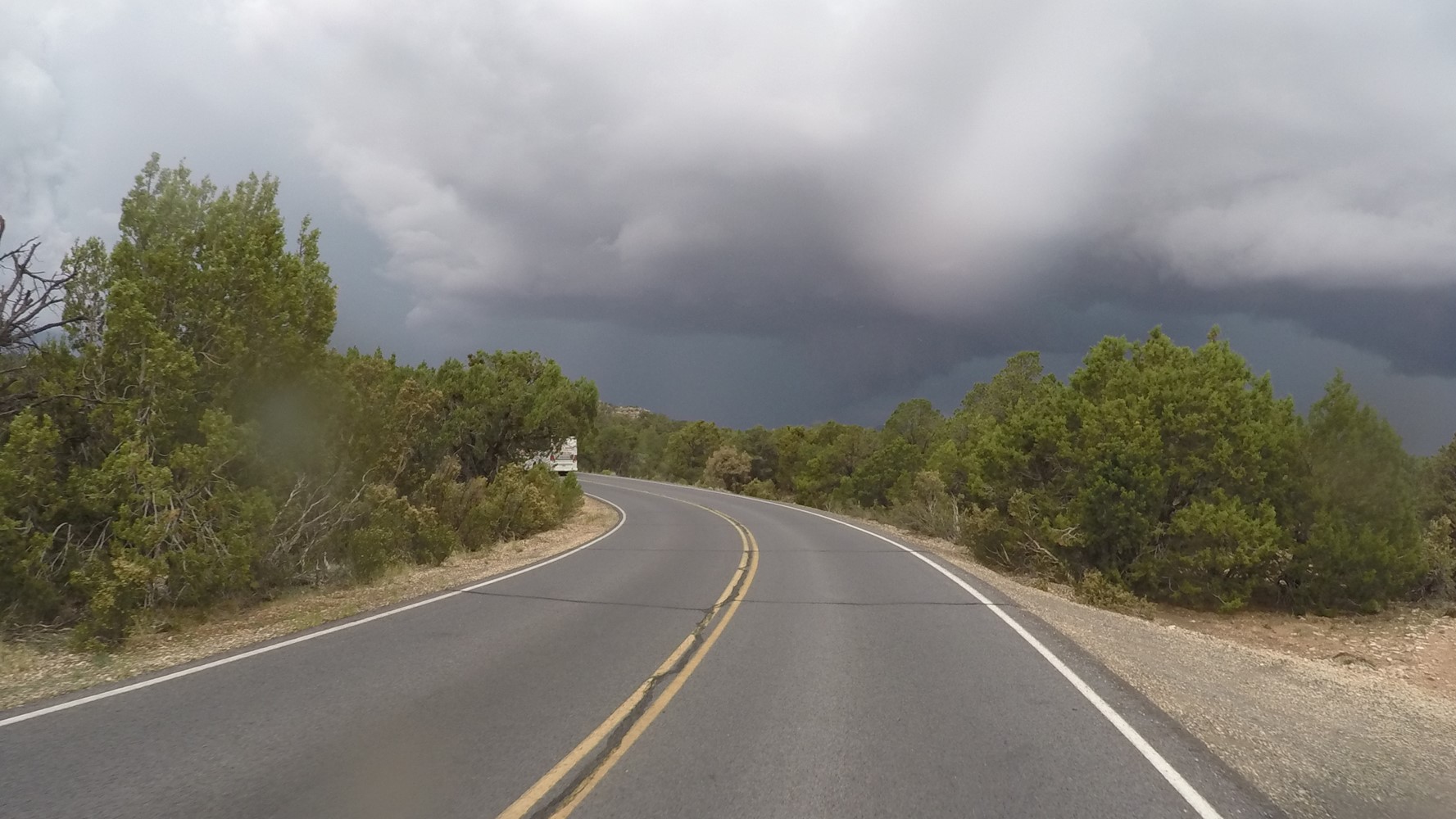 Schon bei der Abfahrt in Flagstaff, AZ stößt der Himmel wüste Drohungen aus.