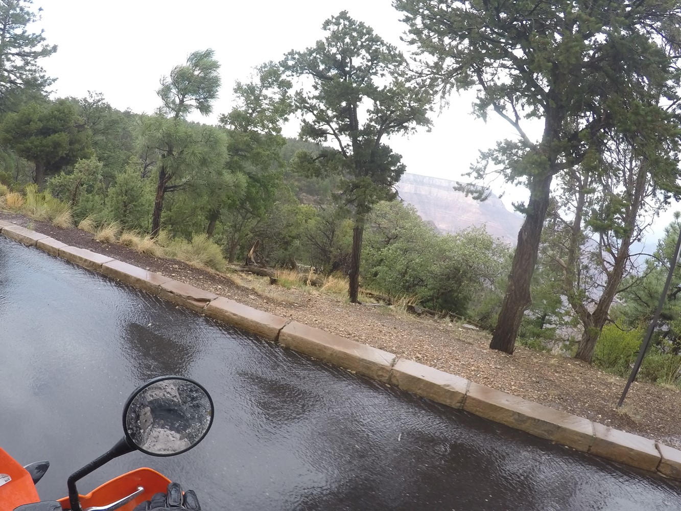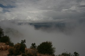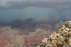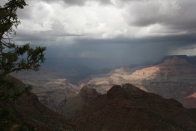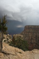 Es gelingt mir nicht, das Gewitter ist schneller.Na gut, also überholen lassen. Mir bleiben nur düstere und wild-romantische Bilder vom Gewitter über dem Canyon. Und die Hoffnung, dass es noch aufklaren wird.