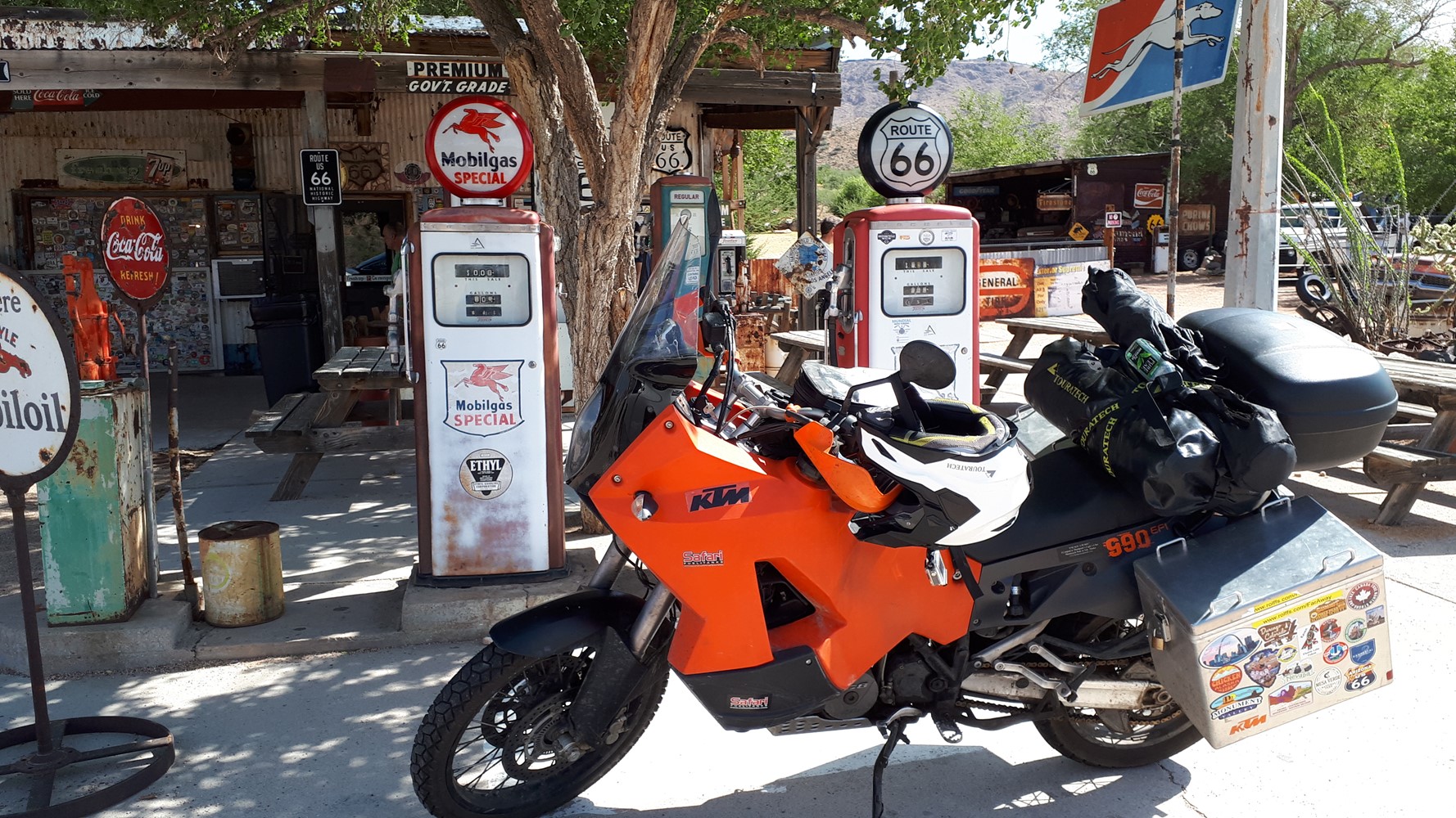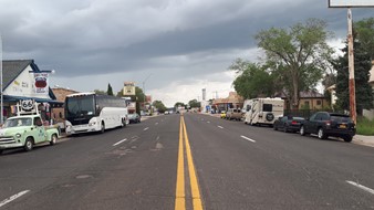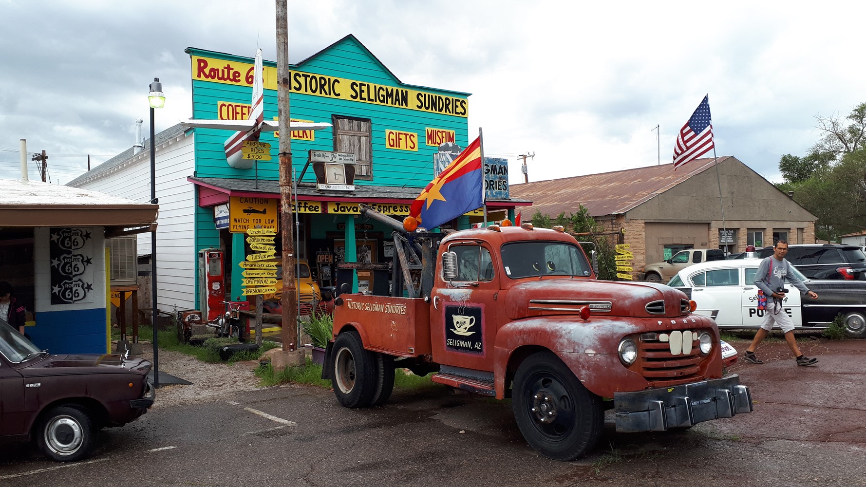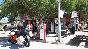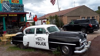 Seligman, das Mekka der Route 66-Nostalgiker - ein Museumsdorf, wie es im Buche steht mit festgeschriebenem Veränderungsverbot. Alles ganz hübsch und adrett aufgemacht, aber trotzdem nur Kulisse für die Busladungen von Deutschen, Japanern, Koreanern ..., die Tag für Tag hier durchgeschoben werden. Da wirkten die anderen Orte, durch die ich an der 66 gekommen bin, wie z.B. Williams, lebendiger. Die sind mit der Zeit gegangen.