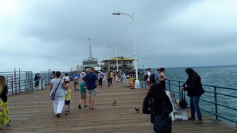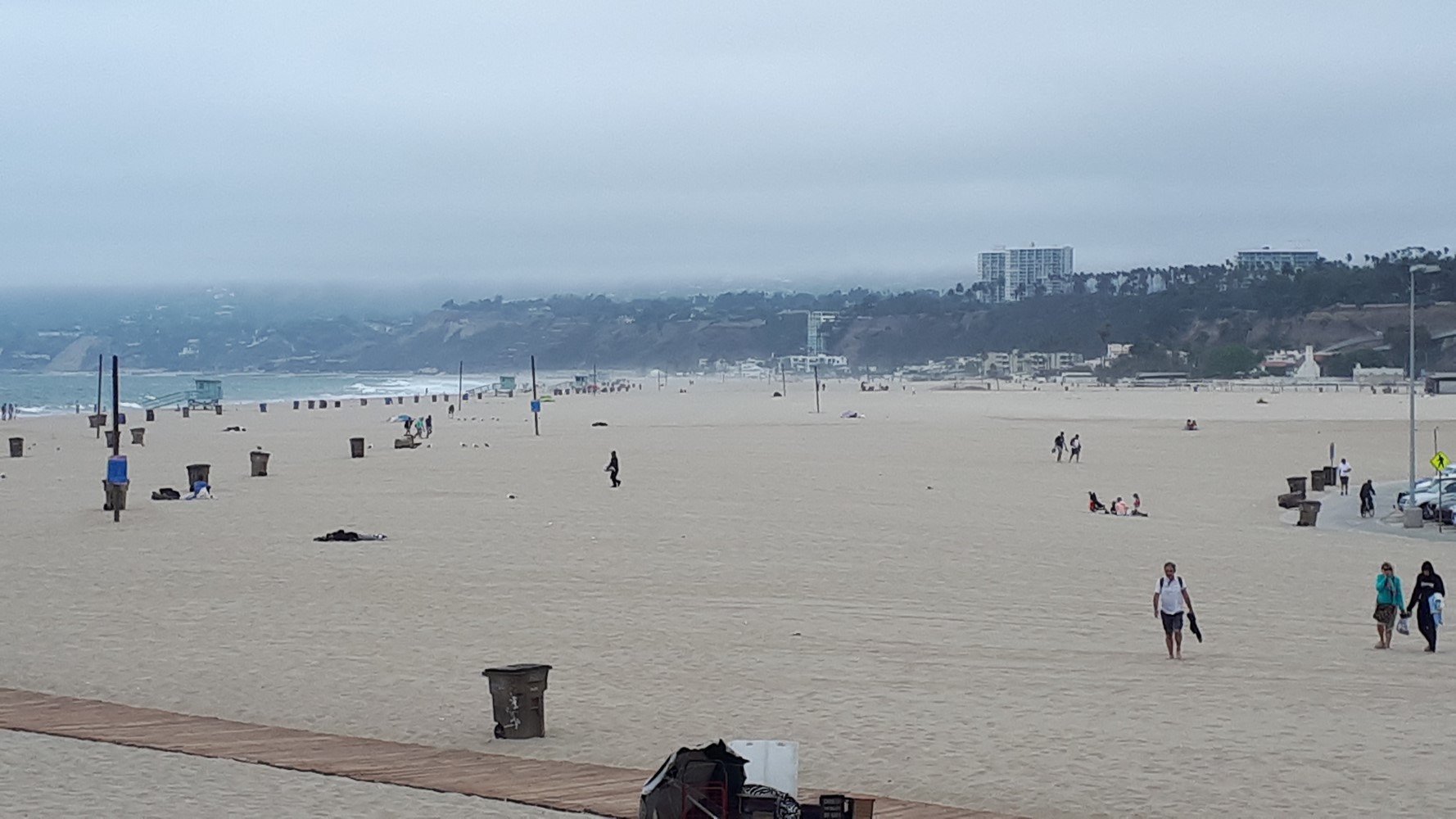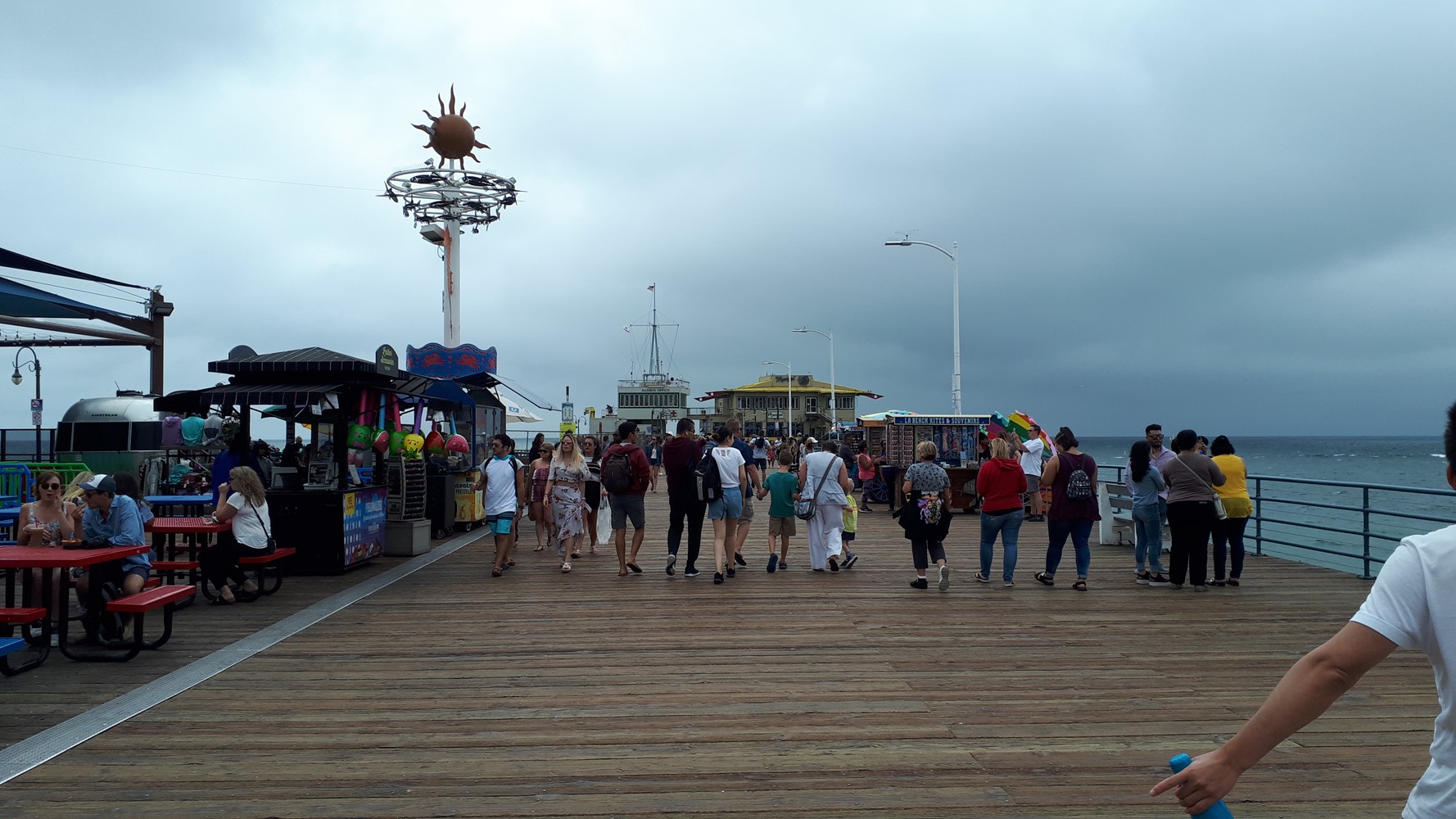Danach noch ein kurzer Abstecher zum Santa Monica Pier, der Endstation der Route 66. Kalter Wind und Niesel kürzen den Aufenthalt aber ab, auch wenn einige Unentwegte herumschlendern, oder sogar noch ins Wasser gehen.