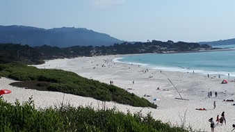 Carmel-by-the-sea, ein Urlaubsort für die Wohlbetuchten. Diesen Anspruch atmet der Ort aus jedem Laden und insbesondere aus jedem Restaurant. Arme Leute sind hier nicht willkommen. Feine Mode, teurer Schmuck und Uhren und dicke, vornehmlich europäische, Autos. Aber hübsch gestaltet haben die Edel-Alt-Hippies von Carmel ihren Ort - von Kitsch bis Kunsthandwerk.